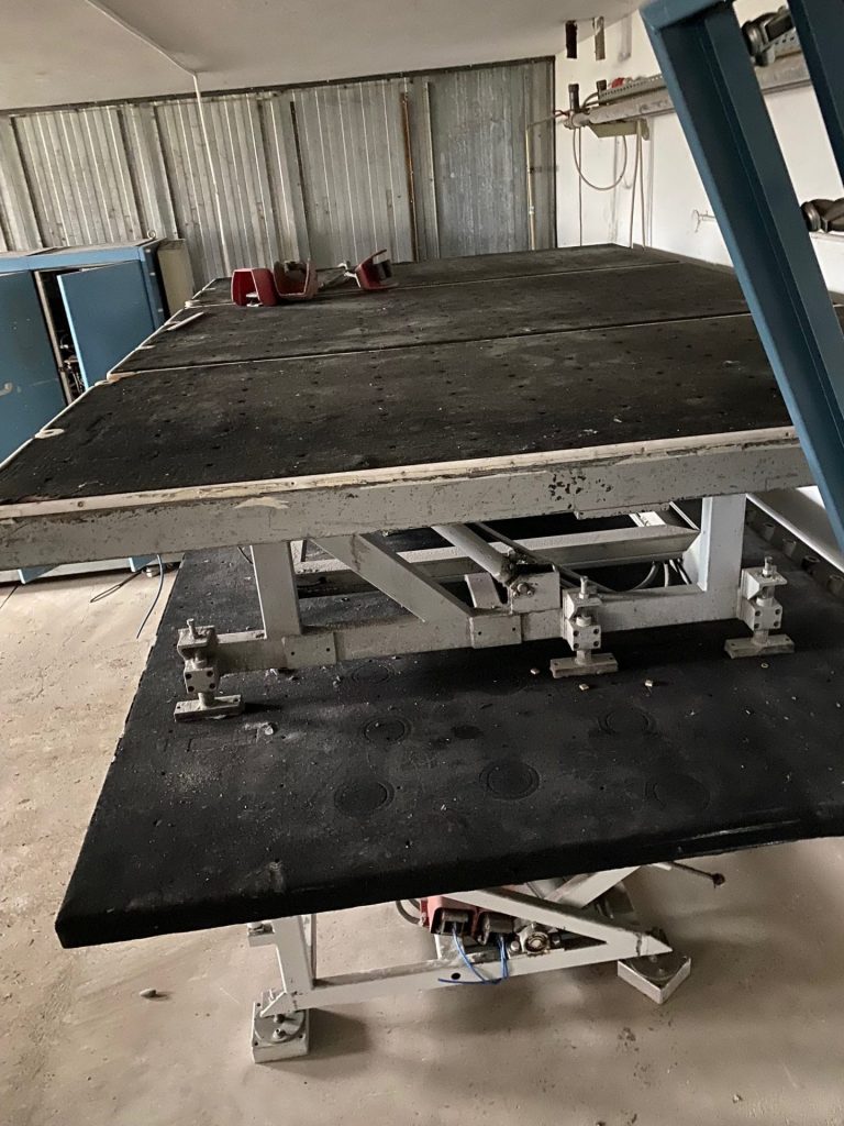 - Process: Glass tilting and transport table